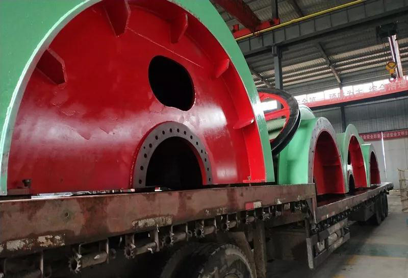 提升機(jī)的卷筒選用高強(qiáng)度低合金鋼Q345A為筒殼材料。現(xiàn)在我們看到的是JK3.0×2.2P剖分式的卷筒。